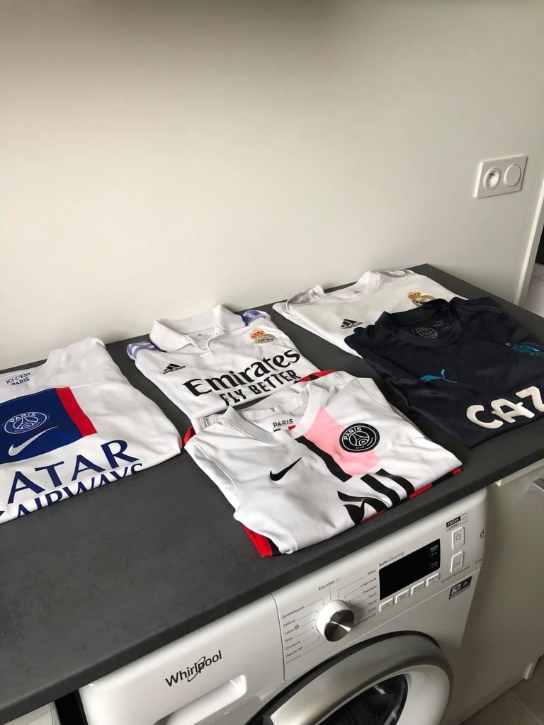 Et aussi… dans le linge sale. Parce que vivre avec des footeux, ça se voit. Principalement dans le panier à linge. Des maillots. Encore des maillots. Toujours des maillots.