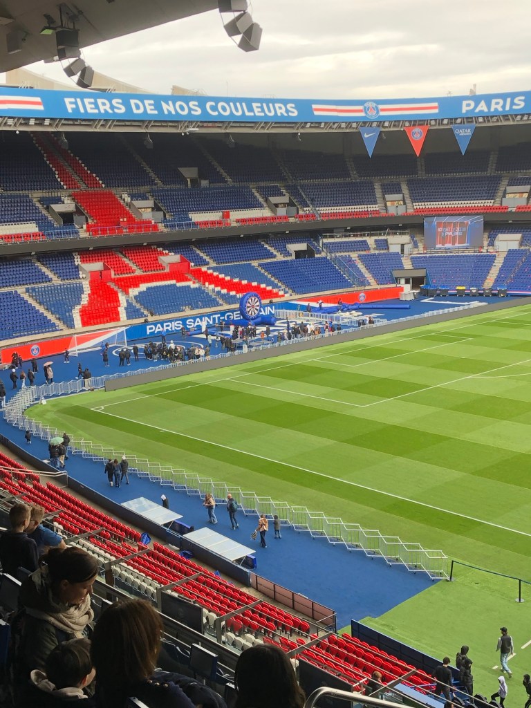 Pour montrer mon dévouement, je suis allée au Parc des Princes… pas pour le foot évidemment, juste pour apprécier les tribunes et les vestiaires des joueurs, vides, comme si c’était un musée.