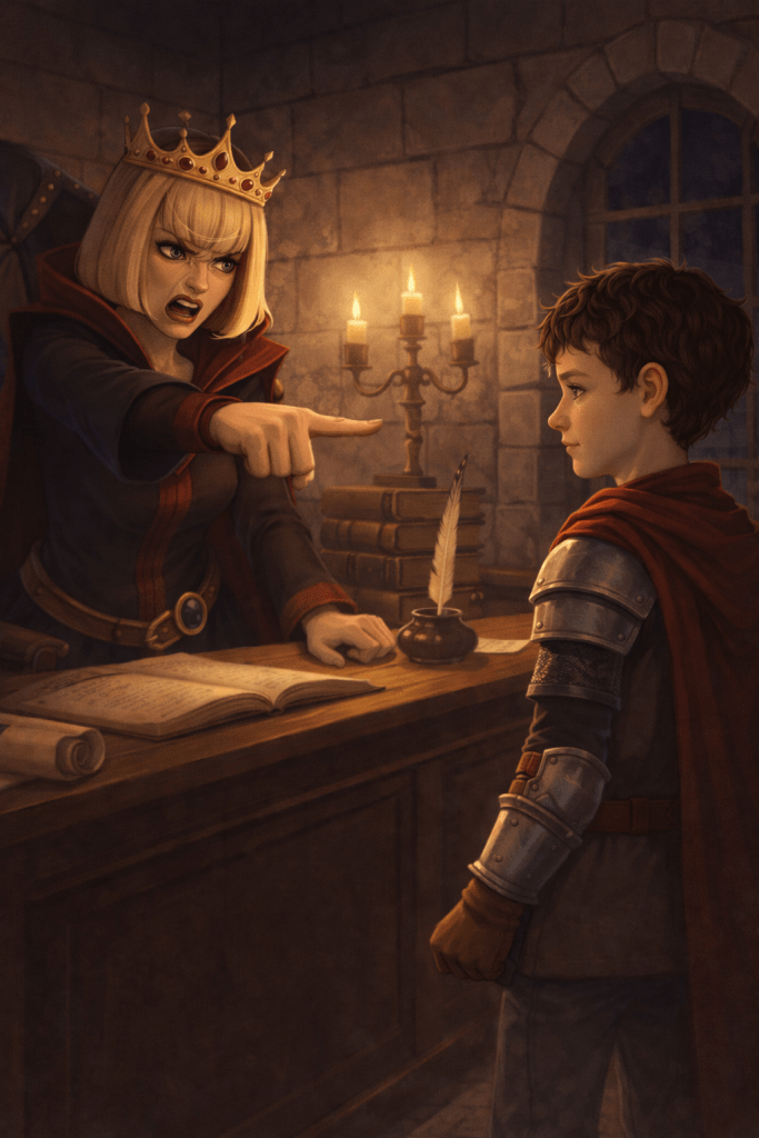 La légende raconte que, malgré les convocations répétées et les punitions incessantes, le Vaillant petit Soleias continua d’avancer. Car dans tous les royaumes, même les plus sévères, la dignité est une armure que personne ne peut confisquer…